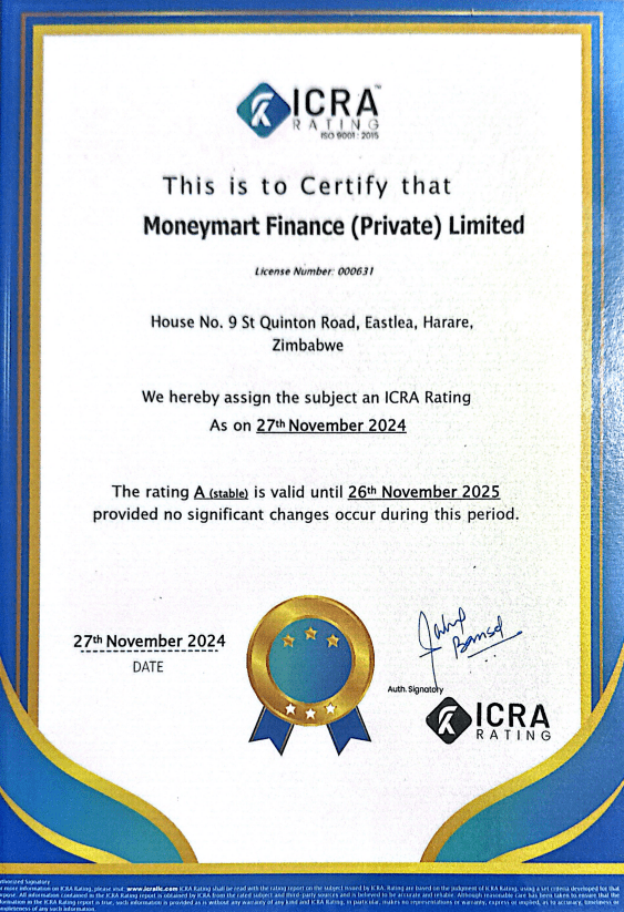 ICRA RATING assigns Moneyman Finance (Private) Limited national scale long-term issuer rating to A Outlook Stable. A (Stable) rating means the entity is in a substantial credit risk position to fulfill its financial commitments. There is a high risk of being adversely affected by foreseeable events.